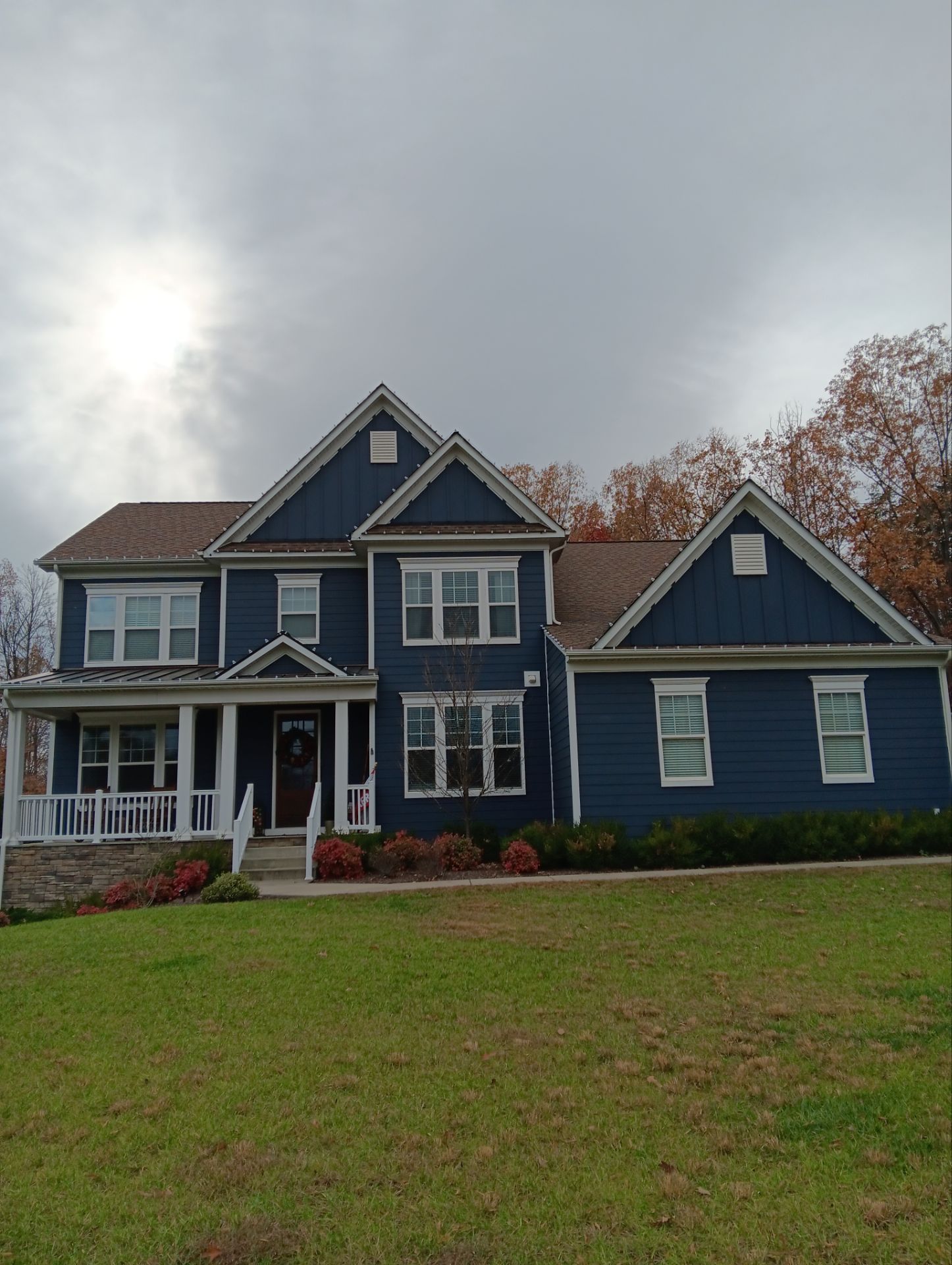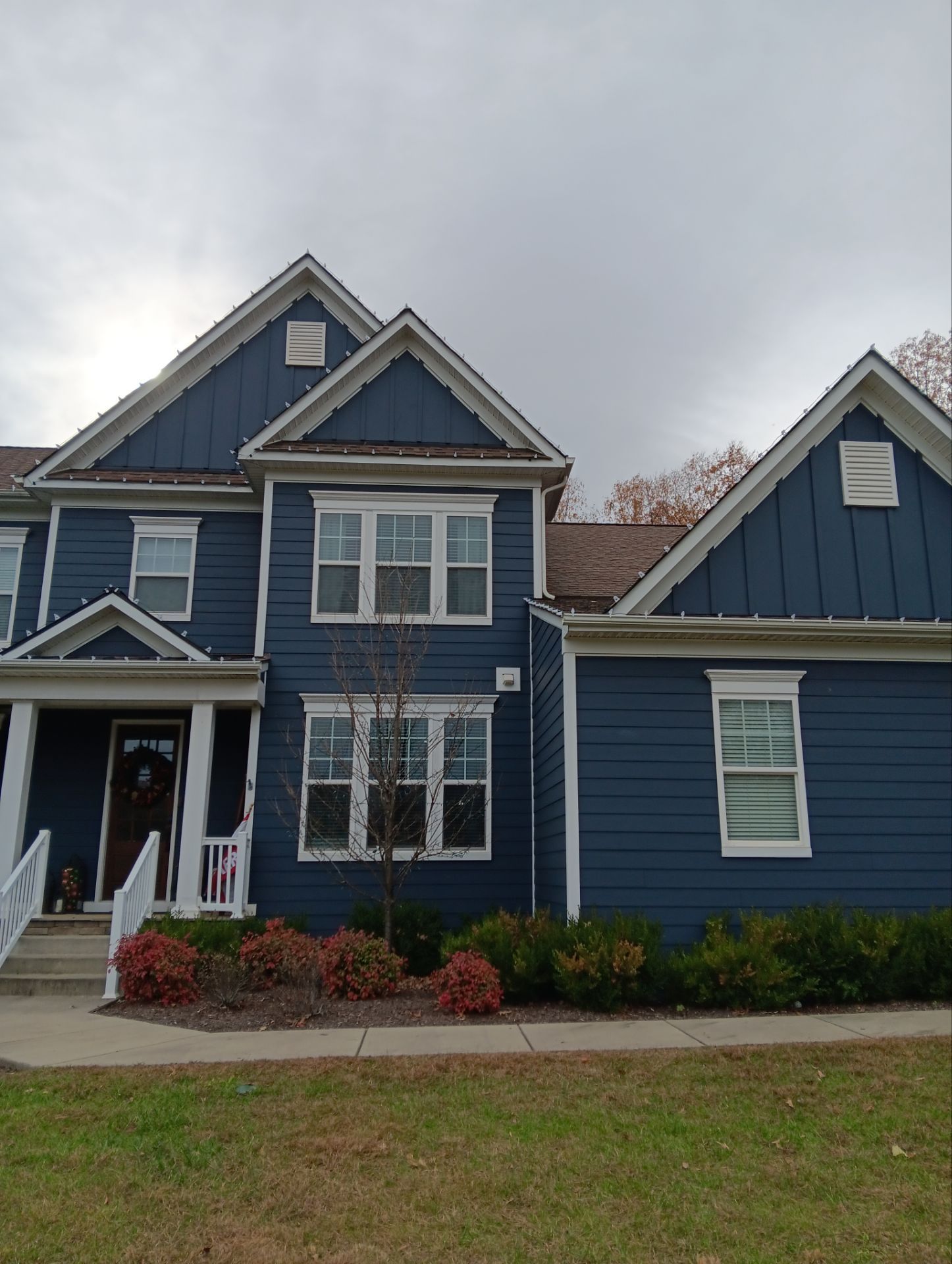 This project is a great example of how professional lighting installation can transform a home for the holidays. The soft glow of the lights against the deep blue siding creates a warm, inviting look that is sure to spread holiday cheer throughout the neighborhood.