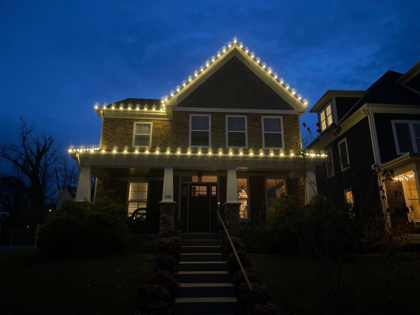 For this Harrisonburg home, we emphasized symmetry and coverage, ensuring the peaks and rooflines were perfectly outlined. The end result is a professional, polished display that looks just as good up close as it does from the street.