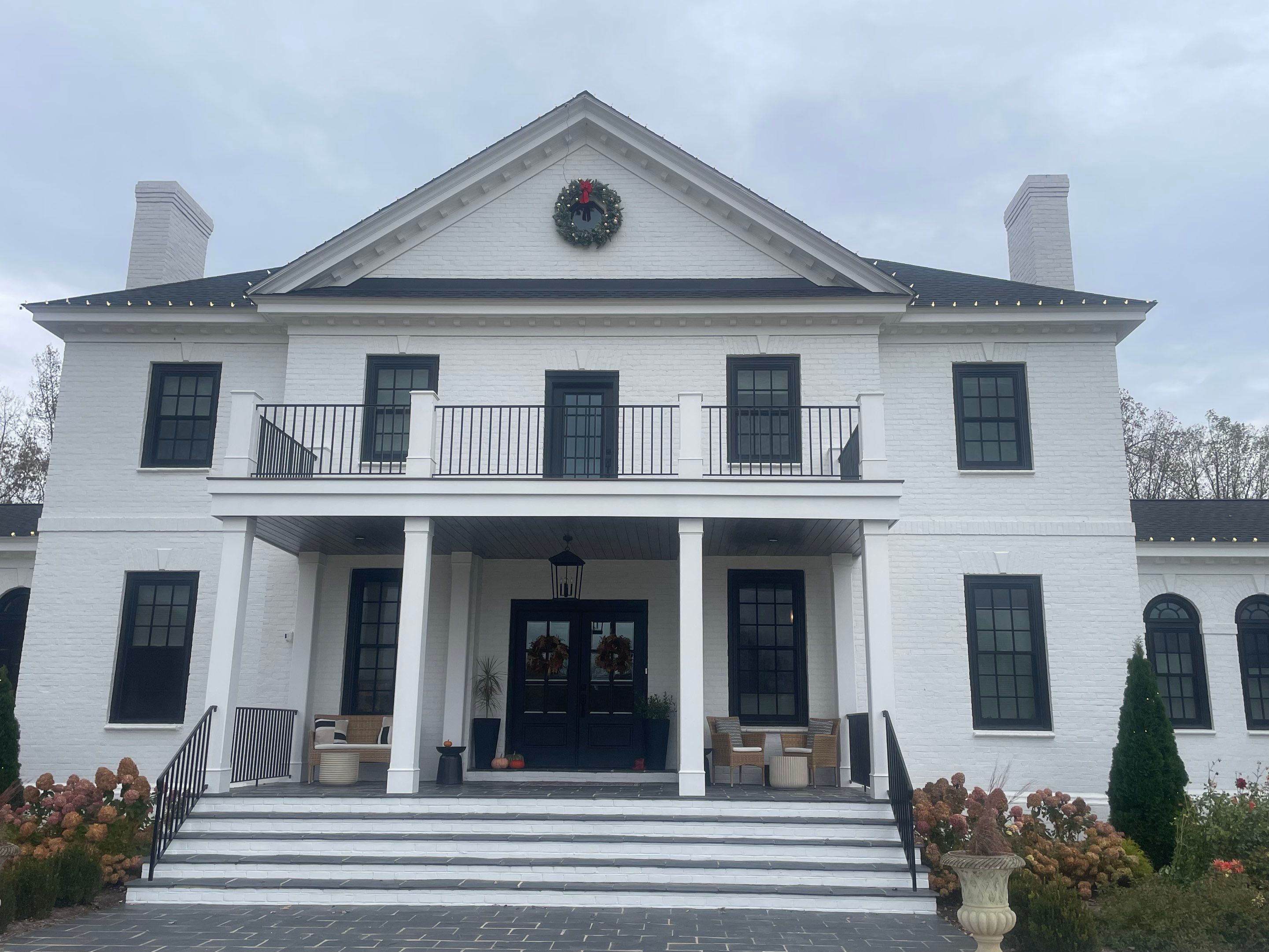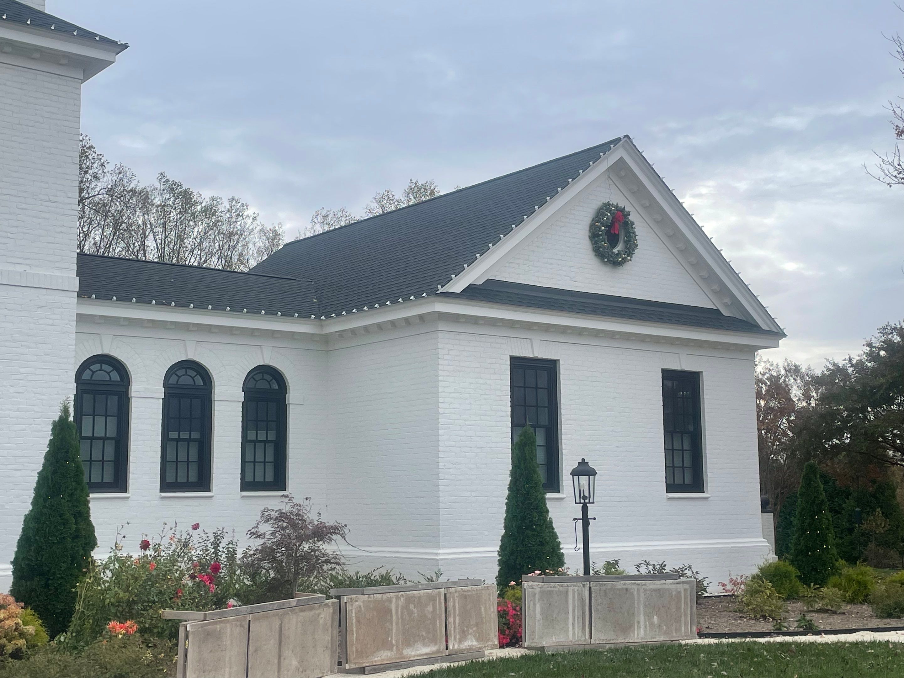 Our team at Charlottesville Christmas Lights recently completed this elegant Christmas lights installation in the Ivy area of Charlottesville, just a few minutes from Crozet. This stunning home already has a timeless, classic look with its white brick exterior and black trim, and our warm white roofline lights complemented it perfectly.